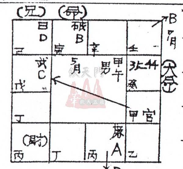 b.今年在午(流命.大子)有生B,對宮有生A→(自化)D 依象,必有二件事